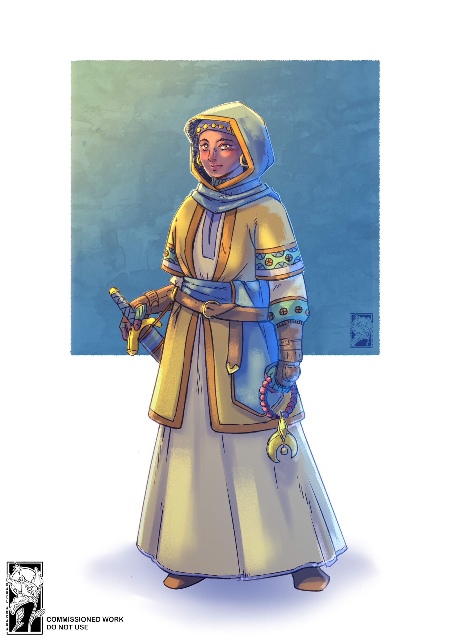 Kahel Arcana (she/her) is a character designer and illustrator from the Philippines. She has done a lot of client work bringing beloved D&D and fantasy characters to life in a visual medium. Her inspiration comes from local and international mythology as well as from the various period wear of western and Asian cultures.Asides from drawing, she's also a huge fantasy and sci-fi nerd and loves to read books that are far too big to read in one day. On weekends, she immerses herself in whatever TTRPG campaign her and her friends have come up with.She hopes to someday finish a zine containing illustrations and a rather sapphic short story about a mermaid, a wizard, and a library that holds every book ever written.